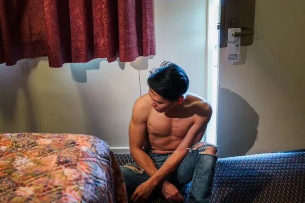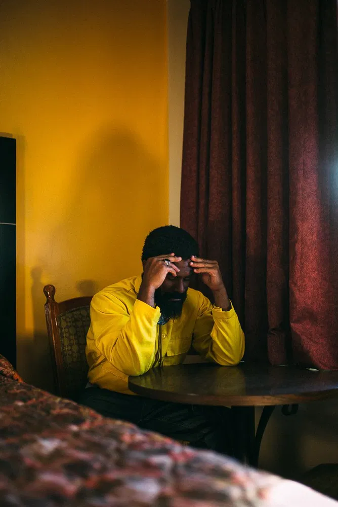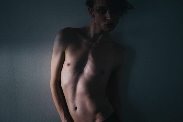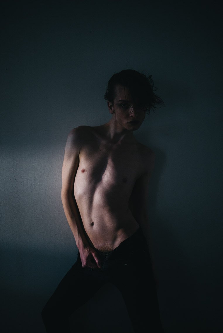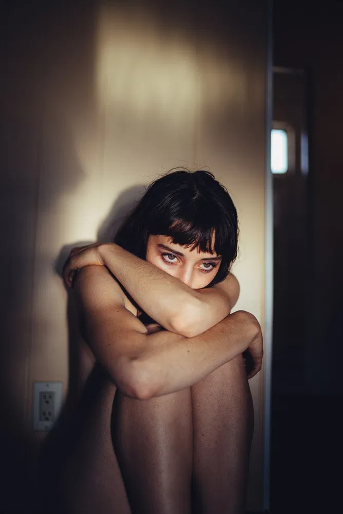 The combination represents and merges two distinct image-making processes. The landscapes were made by traveling—day and night—through thousands of miles of seemingly unbound spaces in California and Nevada. In contrast, the portraits were shot in short (one to two hour) sessions in small and confined spaces; the only variables being the room, the model and myself.