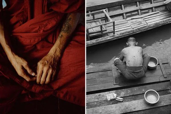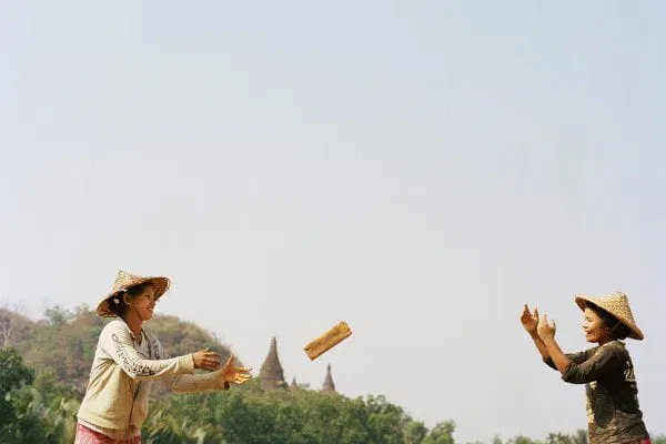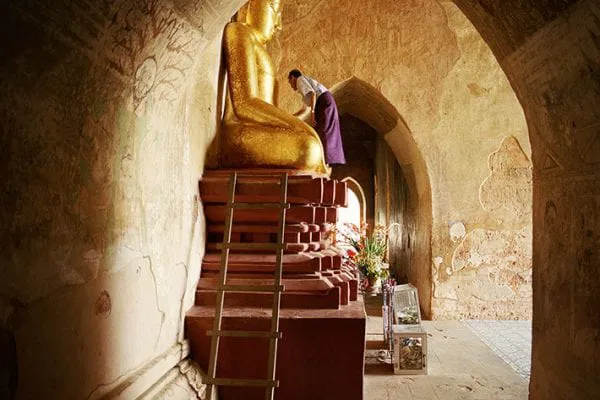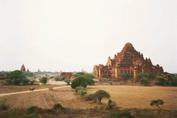 Golden stupas also known as pagodas glitter in the sun wherever you go in Myanmar. In the shadow of these towers, peasants labor in rough conditions. One local drily remarked to me that the country is rich, but the people are poor. For many, life seems to have gone on largely unchanged for the past 2,500 years: peasants, oxcarts, the same kinds of food and clothes. The same glittering pagodas, covered in gold in the richer towns, and merely painted in the poor ones.