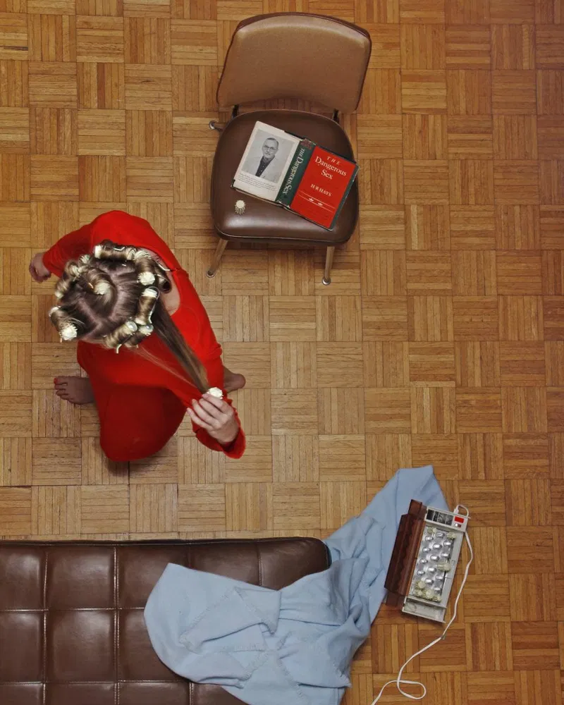 Material for current work derives from the dissection of vintage sex education and social etiquette films, along with science-fiction films of the 1960s. In breaking down the androcentric perception of sexuality, The Woman emerges as a symbol for all things powerful and powerless. My interest lingers within this limbo. I wish to explore this potential of gaining control and losing control simultaneously.