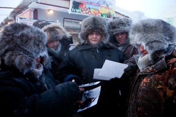 The coldest real measured temperature in Oymyakon was a temperature of -67.7 °C in 1933. This was actually cold enough, and finally not so important for us. We felt it on ourselves that temperature is not just measured with a thermometer. It is much easier to bear a temperature of -57 °C when you get out of a warm guesthouse in the morning, than to get out of a bus after driving 15 hours, into a temperature of just -34 °C and heavy wind.