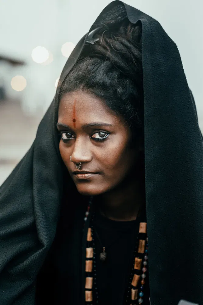 “A striking, intimate portrait that draws the viewer in. Framed by hood and shadow, the woman’s steady, contemplative gaze conveys both humility and transcendence, her adornments and subtle contrasts in tone hinting at layers of identity and devotion. Light, composition, and expression converge effortlessly, creating an image that captures not just a likeness but the profound strength and depth of her presence, lingering long after the first glance. ” – The Independent Photographer Editors
