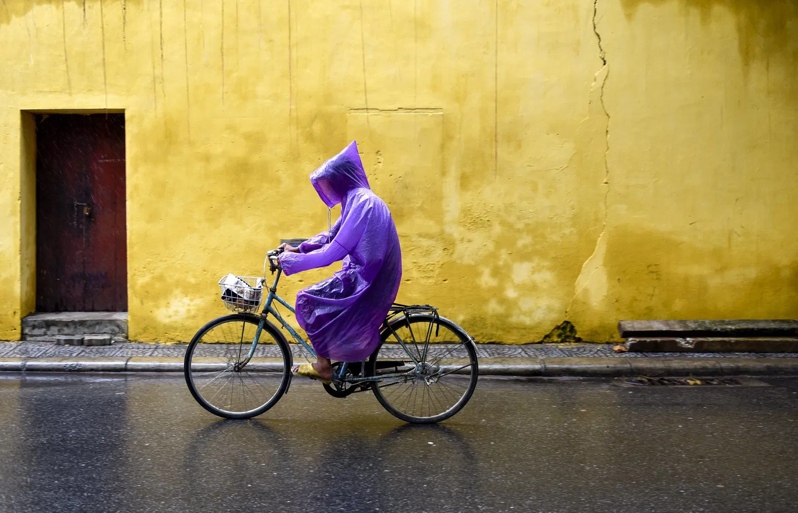 “I was directly attracted to that image for a few reasons: There is an intriguing sense of place (we don’t know where we are, but it is somewhere foreign), the rich texture, color palette and contrast that creates depth in the image, the elegant composition and graphicness of the lines that are broken by the colorful organic shape of the individual riding the bicycle. That photograph immediately drew me into the moment and made me want to know more about the rider and the destination he was heading to.”