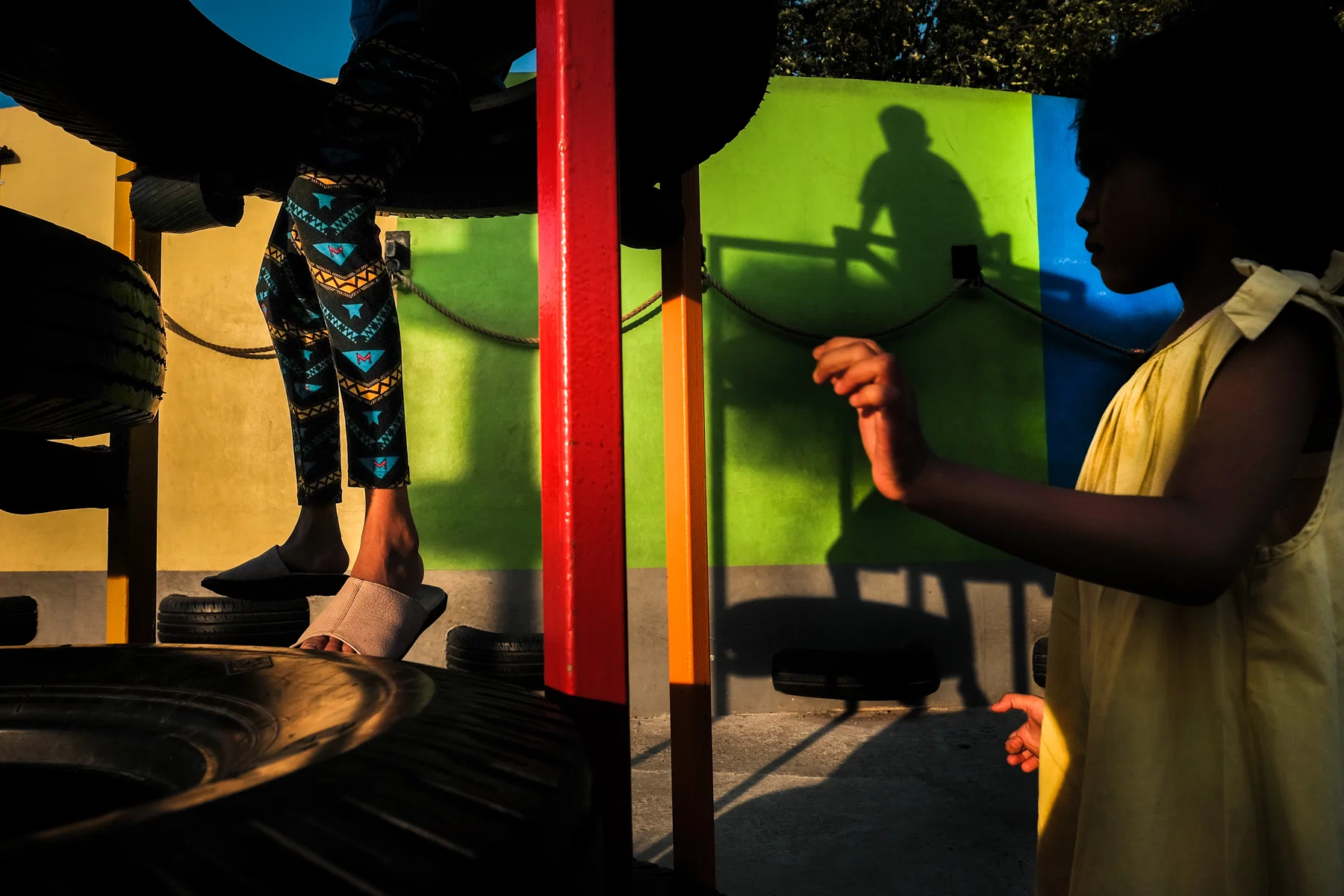 “A masterclass in composition, timing, and color. Victor Djaja transforms a moment of quotidian life into something compelling, reminiscent of masters like Harry Gruyaert and Alex Webb. The central pillar and repetitive shadows create a multi-layered stage, balancing a sun-drenched yellow dress against deep, graphic silhouettes. A stunning image that celebrates the vibrant theatre of the everyday.” – The Independent Photographer Editors
