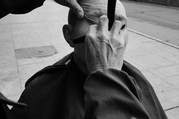 “More than just an excellent street scene, the entire composition, mood and impeccable timing of this portrait of a man receiving a shave on the streets of China is fantastic. The framing right above the arm leading us up to the black vintage straight razor, the precise and firm position of the barber’s hands forcing the customers skin into wrinkles; A face turned into an abstract figure, eyes hidden away in a seemingly desolated urban space – All in classic and powerful black and white contrast. Timeless, truly.” – The Independent Photographer Editors