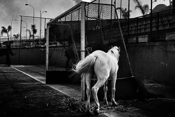 “A beautiful moment, with a complex structure. The photographer has succeeded in capturing a scene full of movement, with every element in place. The flow of men and animals creates a kind of dance. The dark background, aided by the shooting angle from below, makes the people stand out. And the photographer has managed to disappear, unnoticed by the participants.” —Richard Kalvar