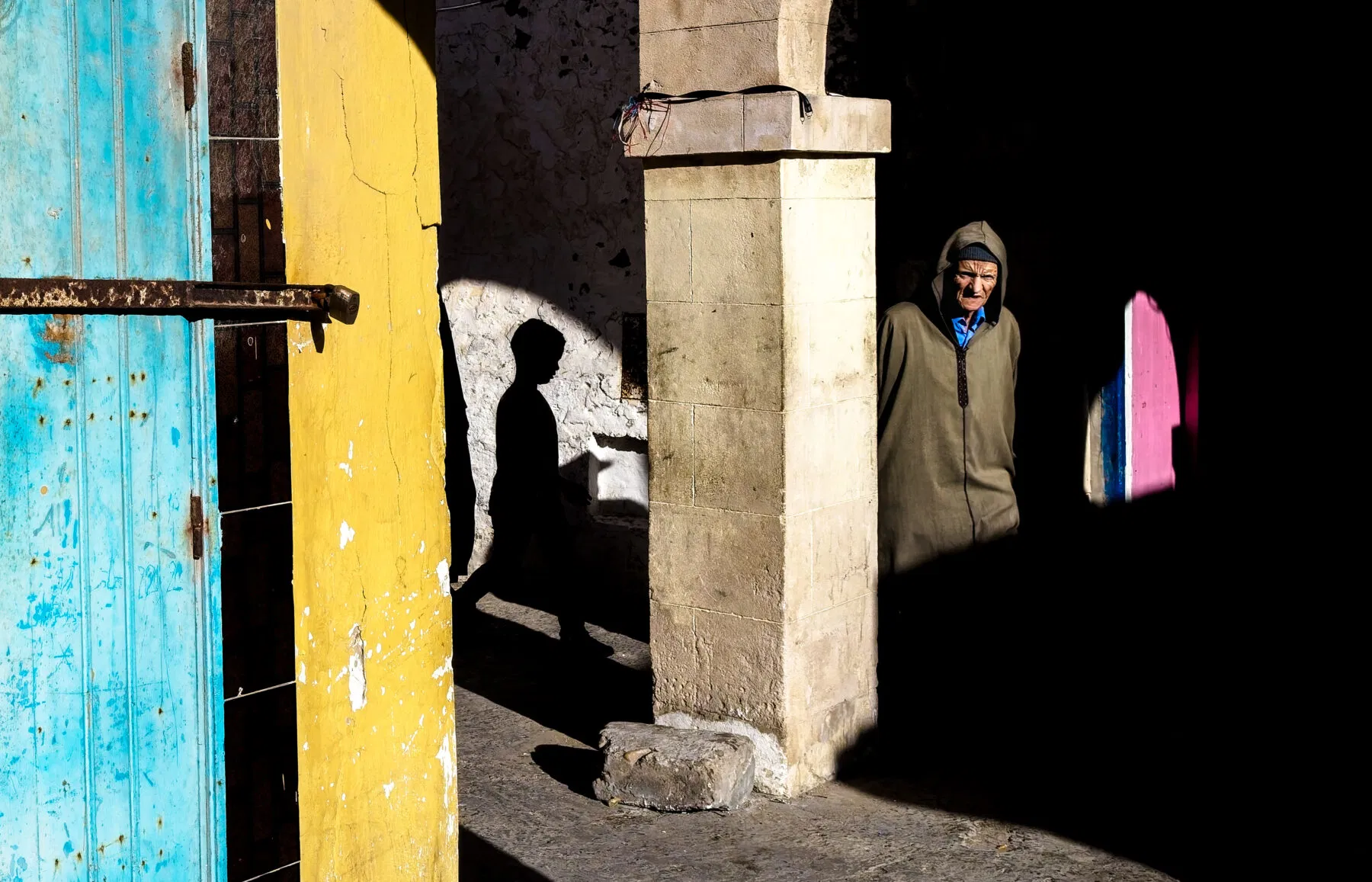 “A perfectly-timed composition that reveals the quiet magic in the everyday. The central pillar divides both frame and generations — a young boy in shadow on one side, an old man in light on the other — each punctuated by vivid flashes of turquoise, yellow, and pink. Color, geometry, and timing converge seamlessly, turning a fleeting moment into a captivating, painterly composition that exemplifies the potential of street photography.” – The Independent Photographer Editors